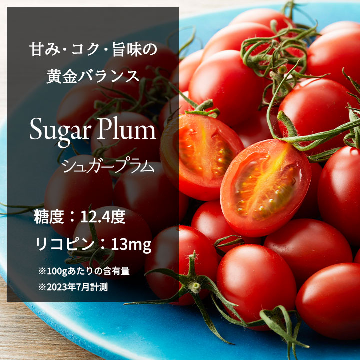 ※シュガープラムは一年を通して生産・販売をしております。季節的な大きさのバラつきや、旬の時期(春~夏)に比べると秋・冬のものは甘さが控えめになってしまいますこと、ご理解いただけますと幸いです。